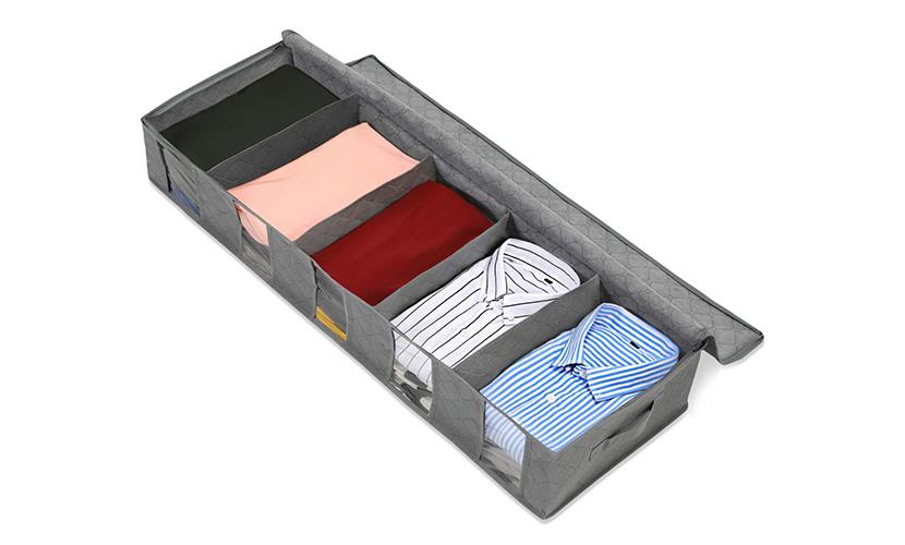產品具有可折疊特性,閑置的時候可以存放到任何地方,節省空間。非常適合存放在衣柜,儲物架或是床下面。