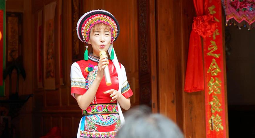 下午是我們參觀的一個云南名族特色景點,白族園。為的是真正去體驗和融入他們的文化和生活。重頭戲便是參加一場白族的婚禮。最挑起氣氛的是我們需要和樓上的白族姑娘深情對唱,哪一方沒有接下去便是輸了。我方五個代表,對陣伴娘團。我們五位阿鵬哥使出渾身解數,有勝有負,倒是不相上下,不過結果對觀眾來說并不重最要。目送一對璧人跨火盆,拜天地。在用完白族的八大碗午餐之后,最后一個活動是觀賞孔雀。在幾次口哨聲之后,數十只孔雀便從對面的塔樓上橫飛了過來,孔雀東南飛啦,聲勢浩大異常。在哨聲中,它們整齊地踱步轉圈,只顧腳下的食物,完全不為幾位白族金花(當地對姑娘的稱呼)的舞姿所吸引。倒卻是不知,抓住人們視線的是昂首闊步的孔雀呢,還是翩翩起舞的金花姑娘呢。